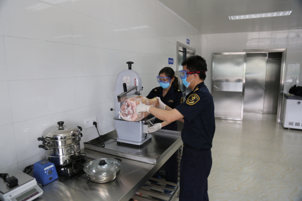 5月10日,義烏鐵路口岸迎來(lái)了首筆肉類(lèi)進(jìn)口業(yè)務(wù)。載有25噸加拿大凍豬腿的冷凍集裝箱,經(jīng)寧波北侖港入境后,通過(guò)陸路運輸抵達義烏鐵路口岸進(jìn)口肉類(lèi)指定查驗場(chǎng)進(jìn)行查驗。這是義烏市進(jìn)口肉類(lèi)查驗場(chǎng)正式運營(yíng)后的首批入境肉類(lèi),也是全省首批通過(guò)陸路口岸直接通關(guān)的進(jìn)口肉類(lèi)。