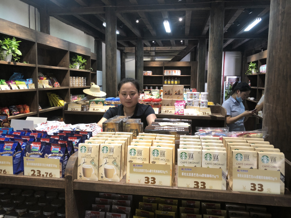 義新歐進(jìn)口商品直銷(xiāo)中心位于分水塘村核心區古街,占地約100平方米,共計二層,充分發(fā)揮陸港集團口岸資源集聚的優(yōu)勢,通過(guò)義新歐的起點(diǎn)——義烏鐵路口岸這個(gè)浙江省唯一的鐵路口岸,將“一帶一路”沿線(xiàn)十余個(gè)國家的300多種類(lèi)目商品運回義烏保稅物流中心。這些商品主要有快銷(xiāo)食品、生活日用品、品質(zhì)紅酒等,經(jīng)由義烏保稅物流中心有限公司向直銷(xiāo)中心直接供給廣大游客,陸港旅游發(fā)展有限公司負責望道直銷(xiāo)中心的日常運營(yíng)。直銷(xiāo)中心的開(kāi)業(yè)給分水塘的村民及游客帶去商品全球化的便利和 “一帶一路”的政策紅利。同時(shí)通過(guò)中心這一窗口生動(dòng)地向全國各地的游客展示了“一帶一路”的內涵。