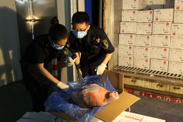 9月5日,一批來(lái)自加拿大的7個(gè)貨柜近200噸凍帶骨豬肉抵達義烏鐵路口岸肉類(lèi)指定查驗場(chǎng)(以下簡(jiǎn)稱(chēng)肉類(lèi)指定口岸),這是肉類(lèi)指定口岸首次迎來(lái)單次批量最大的進(jìn)口貨物。同時(shí),肉類(lèi)指定口岸面向多家新聞媒體就市政府出臺的支持指定口岸發(fā)展的若干政策進(jìn)行推介。