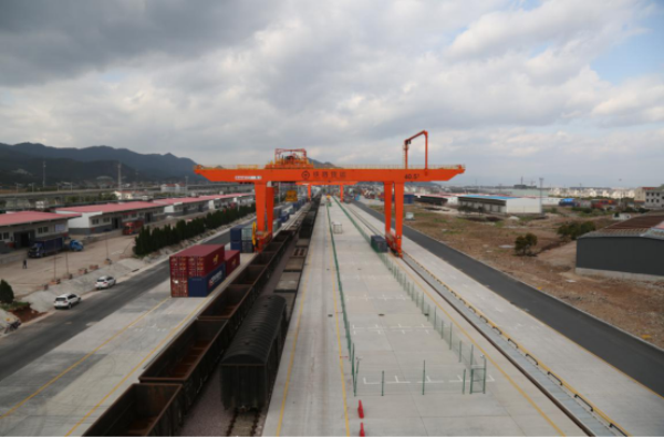 義烏鐵路口岸貨一、二線(xiàn)海關(guān)監管區總體面積為60000平方米,配置1束2線(xiàn)的鐵路貫通式裝卸作業(yè)線(xiàn),容車(chē)數為50車(chē)X2線(xiàn),可提供100車(chē)同時(shí)進(jìn)行裝卸作業(yè)。線(xiàn)路內配備了2臺起重能力為40.5噸的專(zhuān)業(yè)門(mén)吊,配備門(mén)吊作業(yè)人員共38人,為三班倒24小時(shí)作業(yè)安排。其中貨一、二線(xiàn)重箱監管區長(cháng)約680米,寬12.8米,面積約為8700平方米,共設置4列50位2層,計400個(gè)重箱堆位。貨一、二線(xiàn)監管區的投用是鐵路口岸服務(wù)雙班列的一項重要舉措。它能有效將中歐班列場(chǎng)地與海鐵聯(lián)運場(chǎng)地通過(guò)物理方式分隔開(kāi)來(lái),海鐵聯(lián)運日均發(fā)運量能夠達到4列,同時(shí)大大降低了運營(yíng)成本,極大的提高了雙班列通關(guān)、發(fā)運的效率。