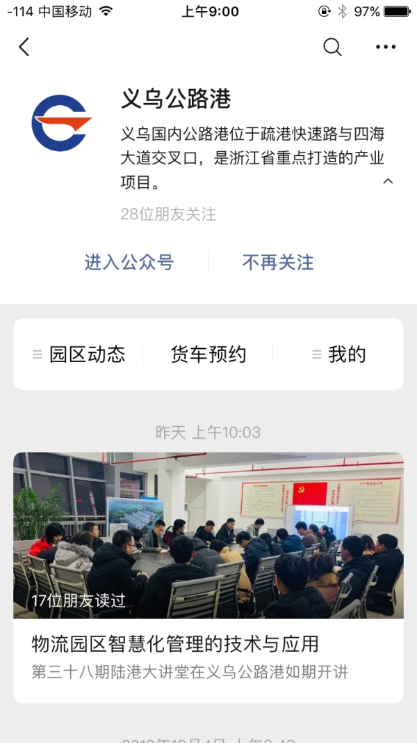 硬件”是基礎、是保障,“軟件”是靈魂、是核心,通過(guò)經(jīng)營(yíng)戶(hù)需求調研,挨家挨戶(hù)上門(mén)走訪(fǎng)、發(fā)放問(wèn)卷,了解他們的需求以及軟件使用習慣,開(kāi)發(fā)建設園區綜合門(mén)戶(hù)網(wǎng)站、智能集卡預約及卡口收費系統、園區支付通道、微信公眾號、園區APP、智慧園區管理平臺、車(chē)輛積分兌換系統。下一步,義烏公路港將繼續推進(jìn)實(shí)名制線(xiàn)上登記系統、電費自動(dòng)抄表及預繳系統的開(kāi)發(fā)建設。