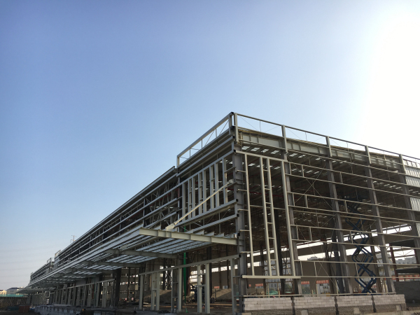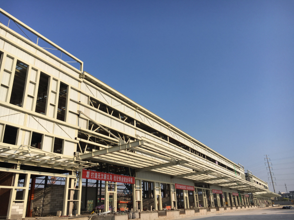 12月28日,義烏市西鐵路貨場(chǎng)二期擴建工程倉儲區集拼一、集拼二成功完成了主體結構安裝,順利結頂。
