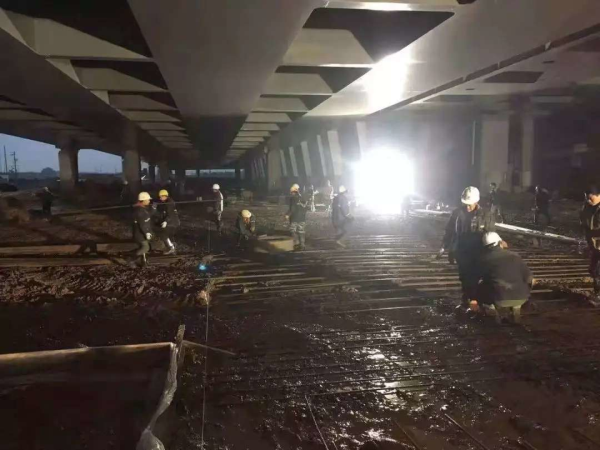 施工中,推行扎根工作面現場(chǎng)精細化管理,強化過(guò)程控制,高效調配資源,自我加壓,倒排工期,把握關(guān)鍵環(huán)節,突出“智慧管理”,平衡工序,全力推進(jìn)。施工高峰期實(shí)行大兵團決戰,作業(yè)人員高達2000多人,施工遍地“開(kāi)花”,大干快干大會(huì )戰態(tài)勢持續不減。同時(shí),圍繞科技進(jìn)步、工程創(chuàng )優(yōu)、文明工地創(chuàng )建、質(zhì)量改進(jìn)和創(chuàng )新,在綠色施工、節能減排等方面,項目組通過(guò)競賽活動(dòng),比創(chuàng )新,賽技術(shù),工程質(zhì)量、安全、文明施工顯著(zhù)提升。