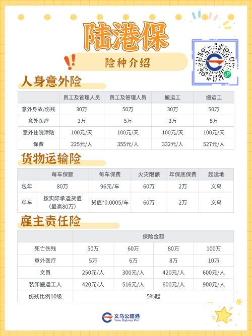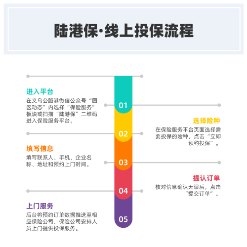 為完善平臺功能,更好地服務(wù)園區入駐企業(yè),公路港公司主動(dòng)與多家大型保險公司洽談協(xié)商,積極爭取各類(lèi)險種最大優(yōu)惠力度。目前,中國人壽保險義烏分公司和中國太平洋財產(chǎn)保險義烏支公司已正式入駐“陸港?!北kU服務(wù)平臺,為物流企業(yè)提供人身意外險、雇主責任險、公路貨運險三類(lèi)險種共8個(gè)投保方案,最高優(yōu)惠力度可達50%。