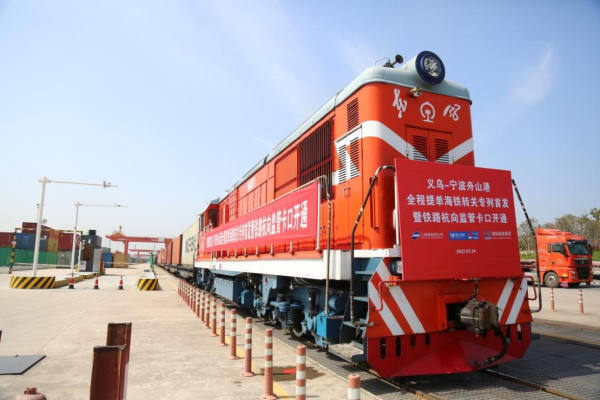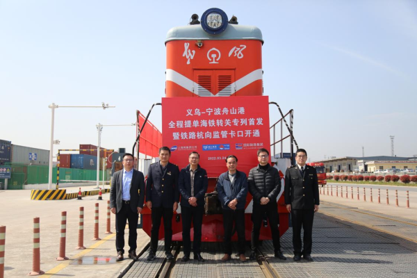 3月24日10時(shí)許,滿(mǎn)載著(zhù)日用小商品的班列從義烏鐵路口岸鳴笛啟程,緩緩駛向寧波舟山港,這是浙江義烏國際公鐵聯(lián)運有限公司成立以來(lái)首發(fā)的義烏-寧波舟山港全程提單海鐵轉關(guān)專(zhuān)列,也標志著(zhù)鐵路杭向監管卡口正式投入運行,助力“第六港區”建設實(shí)現新突破。