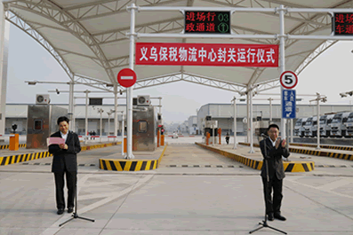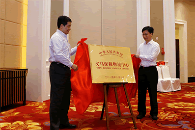 2014年10月10日,B保正式驗收會(huì )議現場(chǎng),聯(lián)合驗收組組長(cháng)、海關(guān)總署加貿司副司長(cháng)李志輝,浙江省政府副秘書(shū)長(cháng)陳宗堯為義烏保稅物流中心揭牌