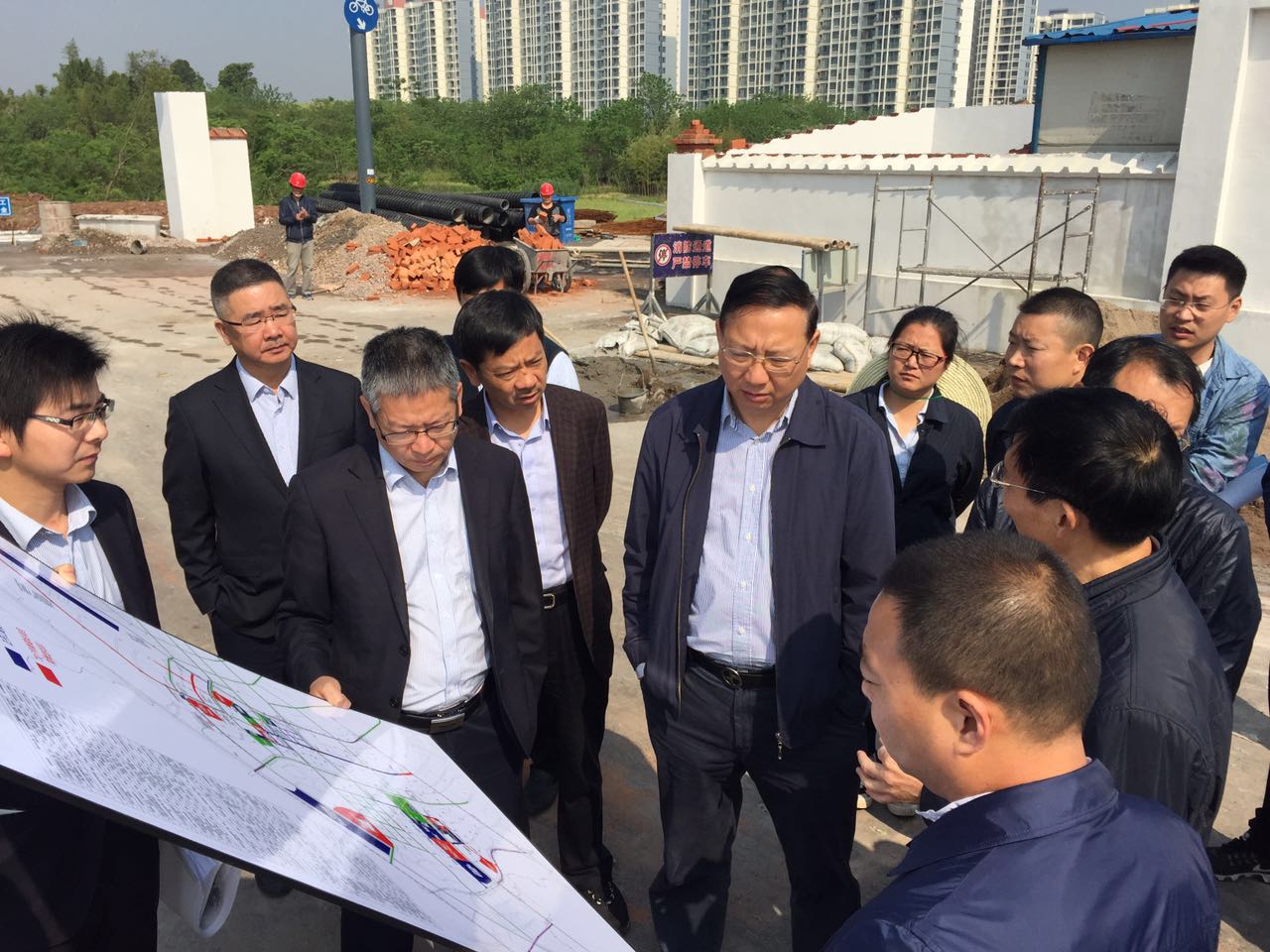 2017年4月28日上午,商貿服務(wù)業(yè)集聚區管委會(huì )主任季金甫一行前往陸港集團在建工程現場(chǎng)