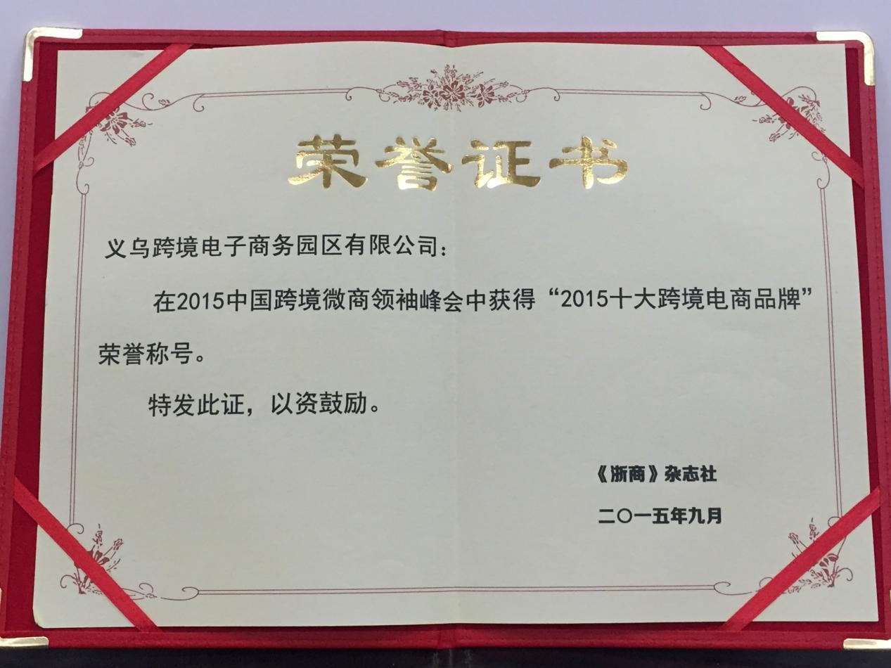 公司獲《浙商》雜志社“2015十大跨境電商品牌”榮譽(yù)稱(chēng)號。