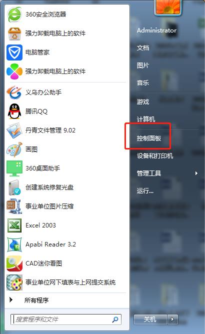 ①點(diǎn)擊桌面左下角的【開(kāi)始】,在彈出的窗口中點(diǎn)擊【控制面板】: