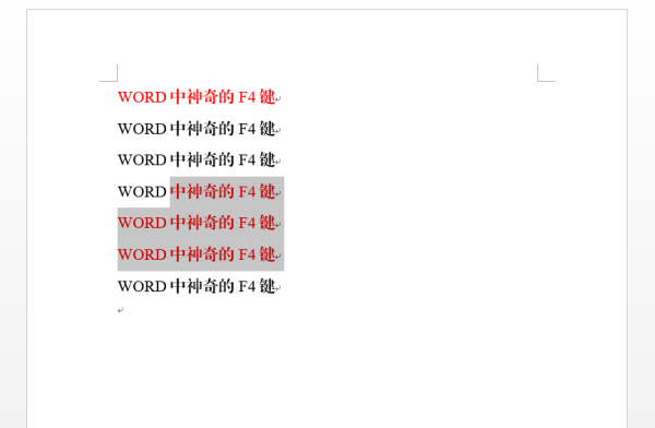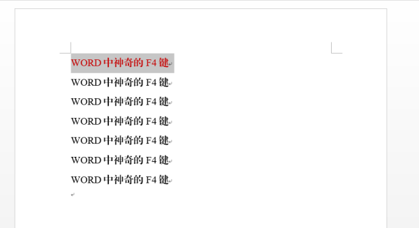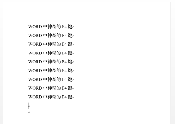 首先來(lái)看一下F4鍵的文本復制功能,即重復輸入一遍剛剛輸入過(guò)的內容,例如首先輸入文本“WORD中神奇的F4鍵”,然后