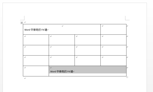 最后來(lái)看一下F4鍵的表格復制功能,即重復操作一遍剛剛操作過(guò)的表格操作(如增刪行或列、合并單元格等),請看此時(shí)效果圖:
