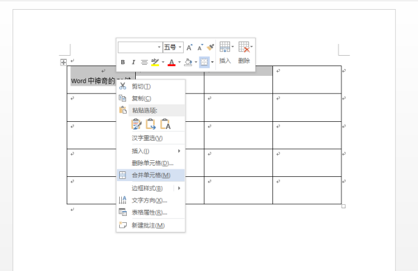 對所選單元格執行合并單元格操作