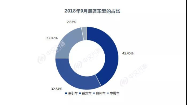 中國公路運輸的市場(chǎng)規模超過(guò)6萬(wàn)億,2017年貨運量達到367億噸,貨物周轉量超過(guò)6.67萬(wàn)億噸公里。截止2018年9月30日,“全國道路貨運車(chē)輛公共監管與服務(wù)平臺上”的牽引車(chē)244.9萬(wàn)輛,載貨車(chē)188.3萬(wàn)輛,自卸車(chē)127.3萬(wàn)輛,專(zhuān)用車(chē)16.3萬(wàn)輛,車(chē)輛總數達到576.9萬(wàn)輛,占全國12噸以上全部重型卡車(chē)的96%以上。