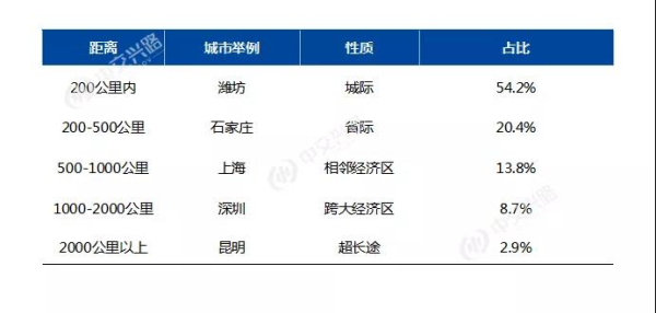 按照車(chē)輛活動(dòng)的區域劃分,200公里以?xún)鹊某请H、200-500公里的省際、500-1000公里的相鄰經(jīng)濟區、1000-2000公里的跨經(jīng)濟區、2000公里以上的超長(cháng)途占比分別為54.2%、20.4%、13.8%、8.7%、2.9%。以濟南為例,可以看到城際和省際運輸占比達到74.6%,占據市場(chǎng)主流。