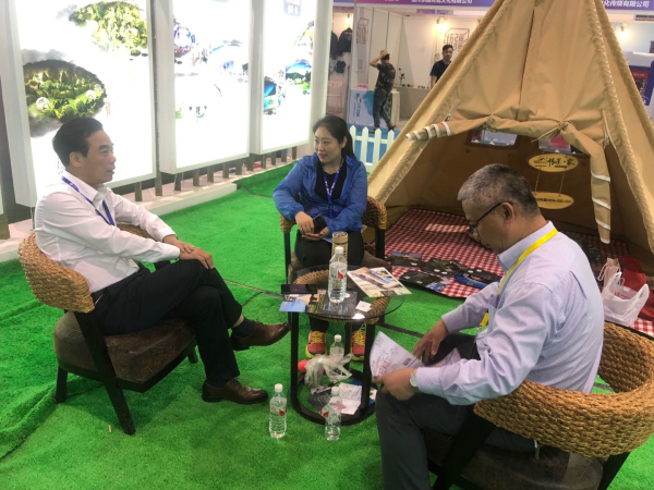 集團王董和前來(lái)咨詢(xún)的展商進(jìn)行洽談