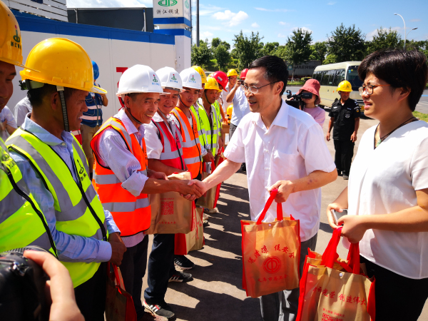 不遠處,市政協(xié)副主席王亦民、市總工會(huì )黨組書(shū)記、主席劉金土,陸港集團黨委委員、紀委書(shū)記朱小玲等相關(guān)領(lǐng)導正冒著(zhù)烈日趕往公路港二期項目現場(chǎng),為奮戰在一線(xiàn)的工人送去應急藥品、綠豆、藿香正氣水等防暑用品。