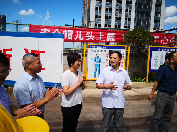 王亦民一行首先詳細了解項目概況、進(jìn)度和相關(guān)工作開(kāi)展情況,認真查看施工現場(chǎng)和防暑降溫措施的落實(shí)情況,并詳細詢(xún)問(wèn)工人們的工作和生活情況,親切地同他們握手并叮囑道:“大家辛苦了,最近天氣十分炎熱,大家一定要注意防暑,保重身體?!?