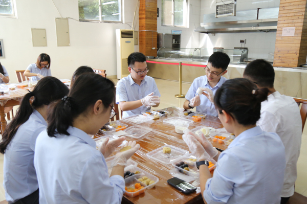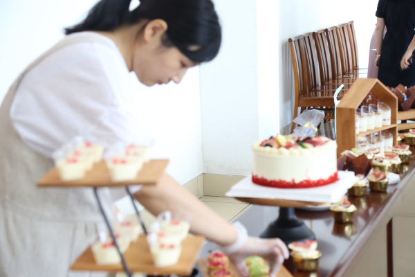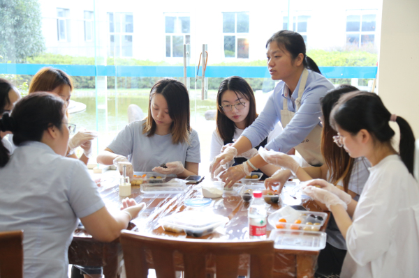 活動(dòng)邀請了專(zhuān)業(yè)糕點(diǎn)老師為大家進(jìn)行授課。老師首先示范了月餅的整個(gè)制作過(guò)程,隨后一桌一桌引導大家一同動(dòng)手,幫助大家完成月餅的制作。從揉餡料再到按壓、成型,步驟雖少但實(shí)際上并不容易,需要大家仔細認真才能完成。通過(guò)一個(gè)多小時(shí)的制作,做好的月餅被送進(jìn)烤箱。隨著(zhù)月餅香氣的飄散,伴著(zhù)美味的甜點(diǎn),大家一起分享這份喜悅。