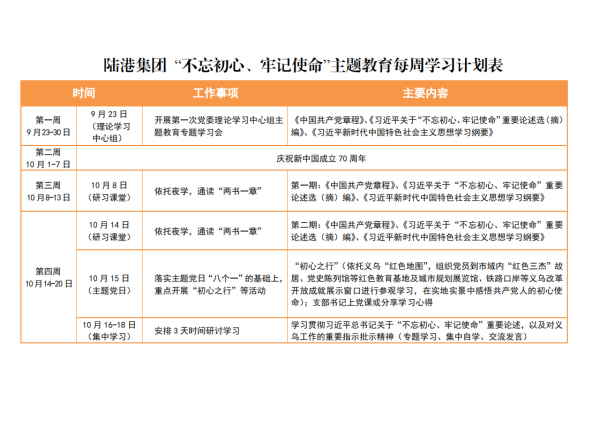 為繼續深入推進(jìn)“不忘初心、牢記使命”主題教育,落實(shí)“守初心、擔使命、找差距、抓落實(shí)”的總要求,適應當前新形勢及市委市政府部署的重大任務(wù),高質(zhì)高效推動(dòng)各單位各項工作,陸港集團創(chuàng )新學(xué)習模式、豐富學(xué)習載體,在這次“不忘初心、牢記使命”主題教育中開(kāi)展每周“研習課堂”學(xué)習活動(dòng)。