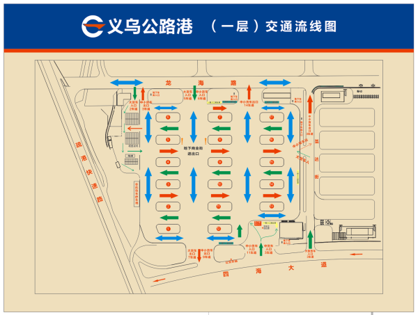 義烏公路港園區地處交通網(wǎng)絡(luò )核心,緊鄰望道高速出入口,國貿大道年底連通疏港快速路并直通園區;內部交通組織科學(xué)謀劃,車(chē)道單向循環(huán),物業(yè)保安指揮車(chē)輛按規章有序行駛,忙而不堵。