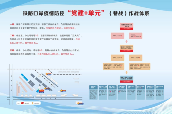 自接到第一批進(jìn)口肉類(lèi)貨柜查驗需求起,鐵路口岸公司迅速成立專(zhuān)班小組,以公司為作戰單位建立“黨建+單元”三級作戰體系,以鐵路口岸公司黨支部為一級作戰單位設立2個(gè)二級作戰單元,8個(gè)三級作戰單元,實(shí)現場(chǎng)站管理全覆蓋。組織全員出擊,主動(dòng)聯(lián)系企業(yè)參與“巷戰”管理共計76人,建立作戰塔群,責任層層落實(shí),具體到人,快速下達并執行指令,以最小單元為抓手,嚴絲合縫,一手抓疫情防控,一手抓業(yè)務(wù)發(fā)展,為防疫工作和業(yè)務(wù)開(kāi)展打下堅實(shí)的基礎。