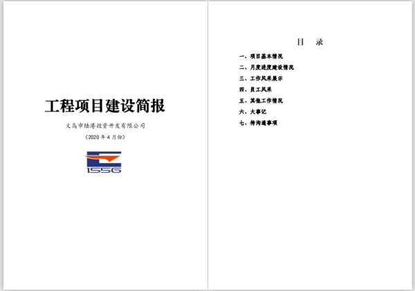 工程項目建設簡(jiǎn)報:簡(jiǎn)報內容包括項目基本情況、月度進(jìn)度、工作風(fēng)采展示、待溝通事項等內容。通過(guò)簡(jiǎn)報形式讓集團領(lǐng)導、公司管理人員掌握各項工程項目建設推進(jìn)情況,及時(shí)發(fā)現、溝通、解決項目推進(jìn)過(guò)程中遇到的困難,進(jìn)一步加快工程項目建設進(jìn)度、提質(zhì)增效。