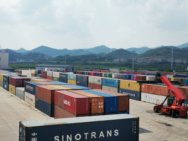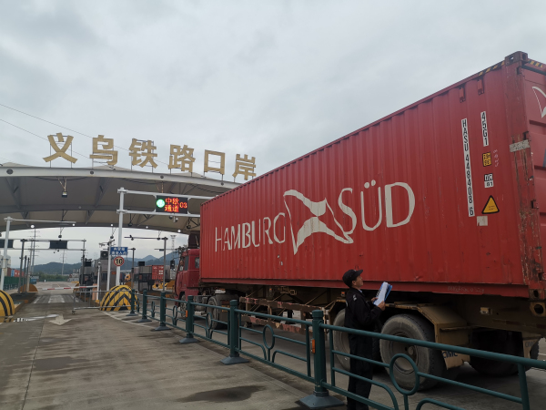 “堆場(chǎng)內已有30個(gè)堆位,卡口車(chē)輛可以放行”。對講機里傳來(lái)了指令,經(jīng)過(guò)登記,我順利到達義烏鐵路口岸海關(guān)監管區卡口了。