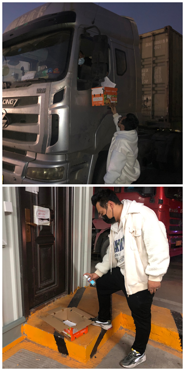 為避免司機與作業(yè)人員直接接觸,鐵路口岸結合業(yè)務(wù)實(shí)際,以無(wú)接觸、無(wú)縫隙、全流程為目標,精準優(yōu)化防控措施。司機將進(jìn)場(chǎng)單投遞到指定箱后,工作人員先進(jìn)行消毒后再處理。