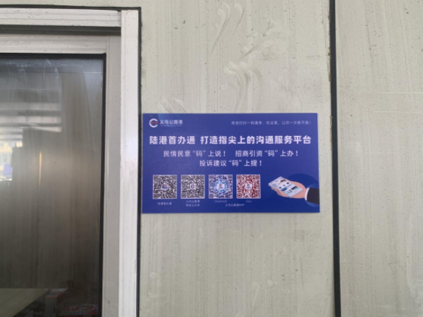 國內公路港公司始終把為群眾辦實(shí)事、做好事、解難事作為檢驗擔當作風(fēng)的重要標準。為更好服務(wù)園企,我們在每一個(gè)檔口都粘貼了陸港首辦通二維碼,企業(yè)“碼”上問(wèn),我們馬上辦。