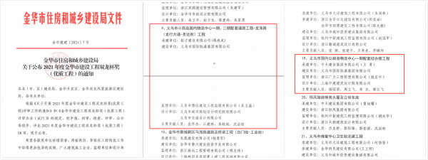 近日,由陸港集團負責建設的義烏市國內公路港物流中心一期配套綜合樓工程和義烏市小商品國內物流中心一期、二期配套道路工程-龍海路(龍行大道-圣達街)等兩項工程榮獲“2021年度金華市建設工程雙龍杯獎”。