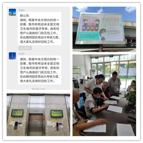 設置文明宣傳牌,懸掛文明宣傳標語(yǔ),LED顯示屏全天播放文明宣傳口號,廣泛宣傳文明創(chuàng )建活動(dòng)。同時(shí),利用微信、QQ等新媒體,不定期向入駐企業(yè)和全體職工推送文明城市創(chuàng )建、社會(huì )主義核心價(jià)值觀(guān)、志愿服務(wù)精神等相關(guān)知識,加大宣傳力度、提升文明創(chuàng )建知曉率。