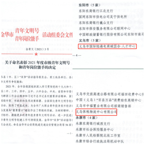 榮獲“2021年金華市青年文明號”新進(jìn)集體