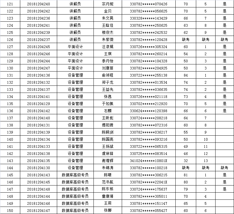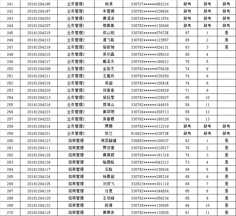 義烏市國際陸港集團有限公司2018年秋季人才招聘筆試已結束,現將筆試成績(jì)及入圍面試人員名單公布如下:
