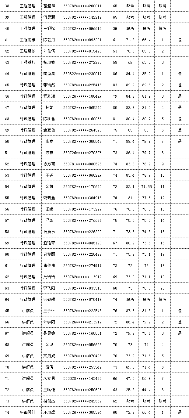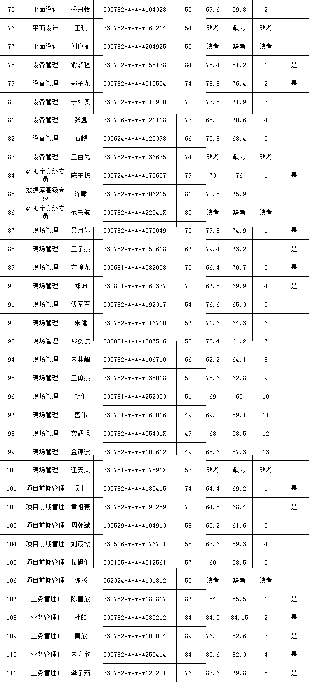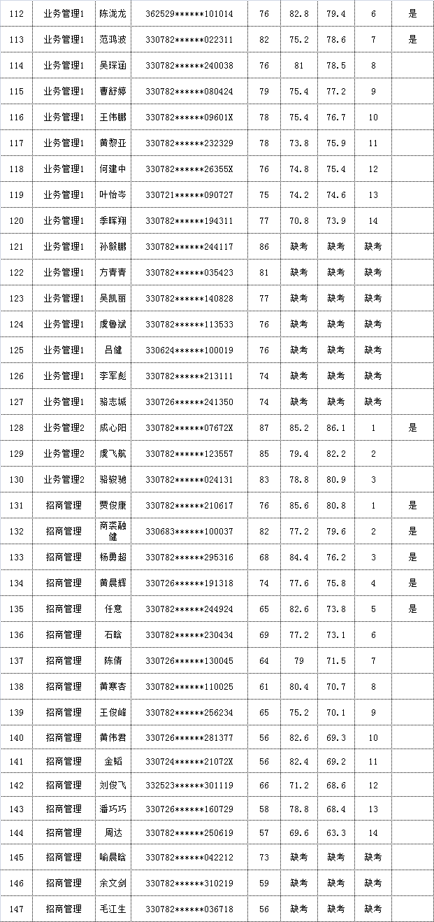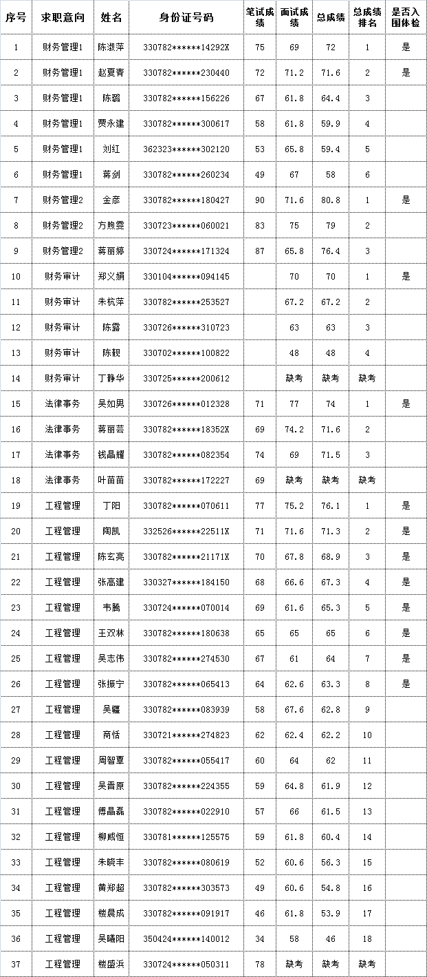 注:根據《義烏市國際陸港集團有限公司2018年秋季人才招聘公告》精神,總成績(jì)相等的以面試成績(jì)高的排位在前