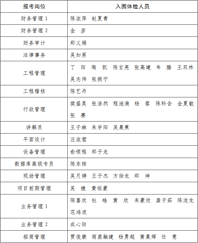 三、入圍體檢人員名單