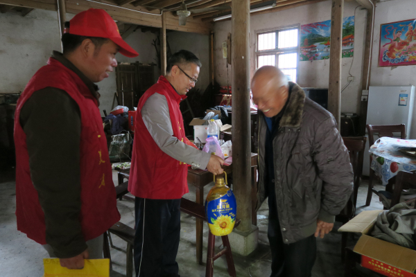 在分水塘,朱耀政帶領(lǐng)相關(guān)人員走訪(fǎng)慰問(wèn)了老黨員,為他們送上了親切問(wèn)候和大米、食用油等生活用品。在老黨員家中朱耀政關(guān)切地詢(xún)問(wèn)了他們的健康和生活情況,并表示陳望道故居的保護離不開(kāi)他們的貢獻,希望老黨員們保養好身體,為陳望道故居的建設發(fā)揮余熱。