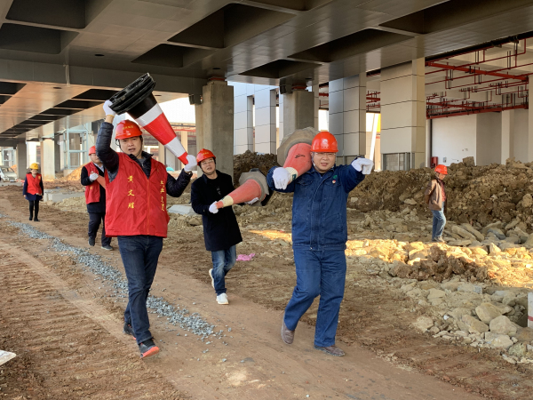 1月24日9:00,集團黨委委員、副總經(jīng)理黃文勝帶領(lǐng)陸港投資開(kāi)發(fā)公司“朝陽(yáng)工程”志愿服務(wù)隊奔赴國內公路港項目工地,劃定紅線(xiàn)區,將一個(gè)個(gè)塑料雪糕桶整齊擺放在施工現場(chǎng)。在金華電力公司的引導幫助下,陸港投資開(kāi)發(fā)公司黨支部黨員同志,一聲吆喝一個(gè)腳印,一個(gè)腳印前進(jìn)一步。在19年年初,國內公路港零擔快運區順利踏出電纜敷設第一步。