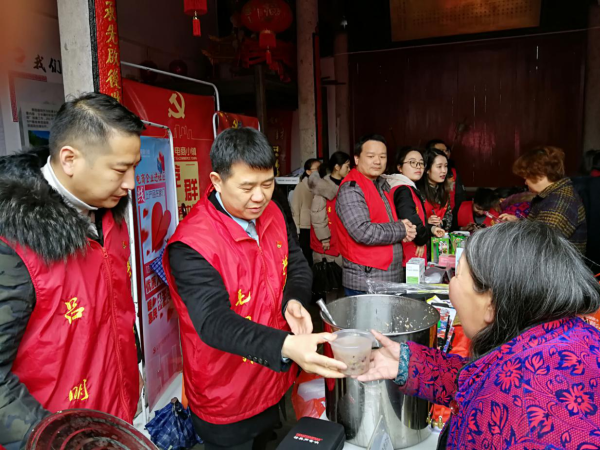 組團服務(wù)現場(chǎng),投資開(kāi)發(fā)公司支部的黨員志愿者們充分發(fā)揮專(zhuān)業(yè)特長(cháng),幫助村民解決自建房施工關(guān)鍵點(diǎn)問(wèn)題,耐心講解“如何做好房屋排漏”,“如何安全美觀(guān)預埋、安裝電器線(xiàn)路”、“如何挑選耐用、高性?xún)r(jià)比的建設材料”等問(wèn)題;保稅物流中心支部的黨員志愿者們則現場(chǎng)普及起了跨境電商政策,指導村民下載保稅區內跨境電商APP,詳細講解各平臺下單操作流程,為村民跨境網(wǎng)購打通壁壘;陸港電商園區支部的黨員志愿者們將線(xiàn)上產(chǎn)品帶進(jìn)分水塘村,進(jìn)行特價(jià)銷(xiāo)售,通過(guò)優(yōu)質(zhì)的服務(wù)暖心惠民。陰雨天氣,第一分公司支部帶來(lái)的“愛(ài)心八寶粥”更是讓村民從里暖到外。