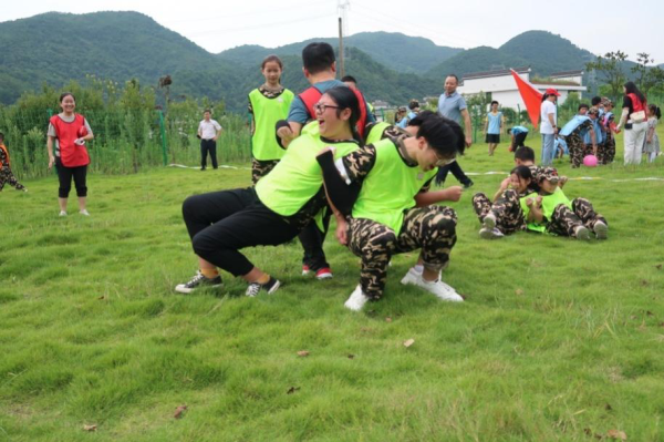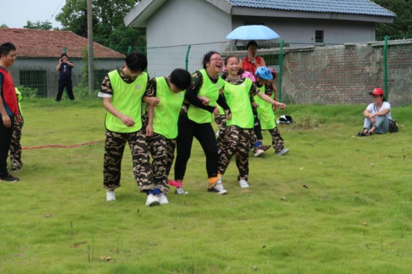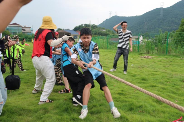 本次課程還設置了“兩人三足”、“坐地起立”、團隊拔河pk賽等趣味運動(dòng),鍛煉同學(xué)們的團隊協(xié)作和溝通能力?!凹佑?!我們一定行!”即使是艷陽(yáng)高照也阻擋不了同學(xué)們的熱情,最后的拔河比賽把氣氛推向了高潮,助威聲、歡呼聲、喝彩聲此起彼伏,歡聲笑語(yǔ)回蕩在分水塘的山谷間。