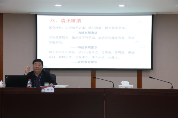 家風(fēng)是百年黨史中恒久的話(huà)題,加強家風(fēng)建設是深化黨員干部作風(fēng)建設的重要內容。在五四青年節來(lái)臨之際,中國作家協(xié)會(huì )會(huì )員、金華市作家協(xié)會(huì )原副主席、義烏市作家協(xié)會(huì )原主席、《義烏家規家訓選》作者駱有云先生應邀為陸港集團高風(fēng)險崗位人員、青年員工及家屬代表,開(kāi)展了一場(chǎng)生動(dòng)透徹的“傳承家風(fēng)家訓、弘揚清風(fēng)正氣”專(zhuān)題講座,講優(yōu)秀家規家訓,評清廉家風(fēng)故事。